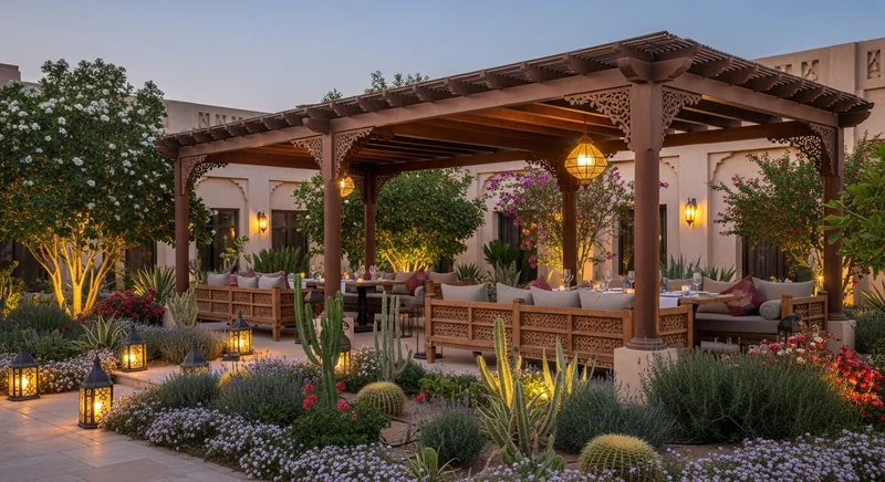 Architectural features like pergolas and custom-built walls define the garden's structure. In Bahrain, blending traditional Arabian design with modern elements honors cultural heritage while offering contemporary elegance.