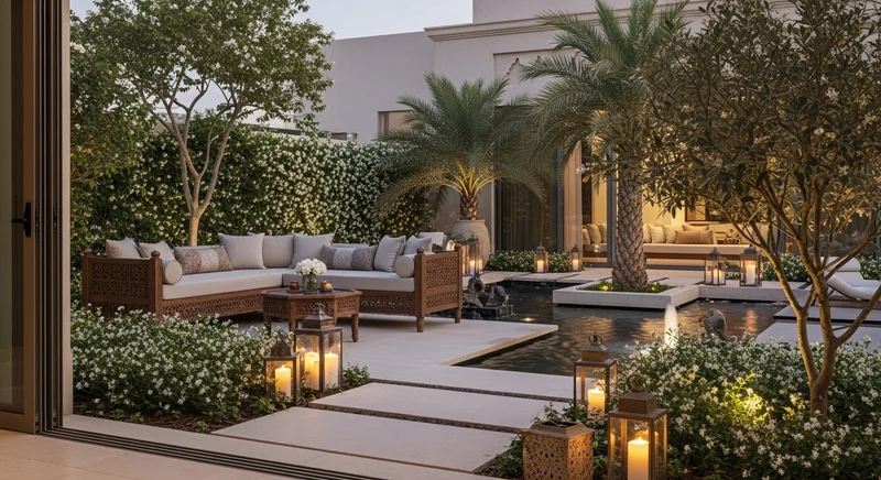 Bahraini gardens often feature robust hardscape elements like stone walls and water features due to the climate. Pairing these with strategic softscape features like shade-providing trees and layered plantings ensures a functional outdoor space.