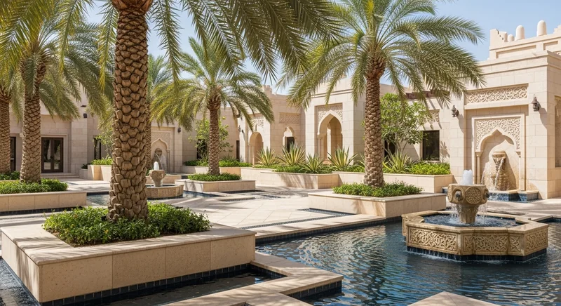 Fountains add movement and sound. In luxury gardens, fountains often serve as focal points, inspired by traditional Arabian designs or contemporary forms.