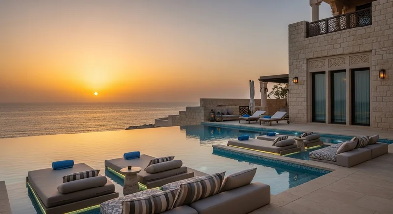 Infinity pools create the illusion of water extending to the horizon, particularly effective on properties with views of the Arabian Gulf or Bahrain’s skyline2.